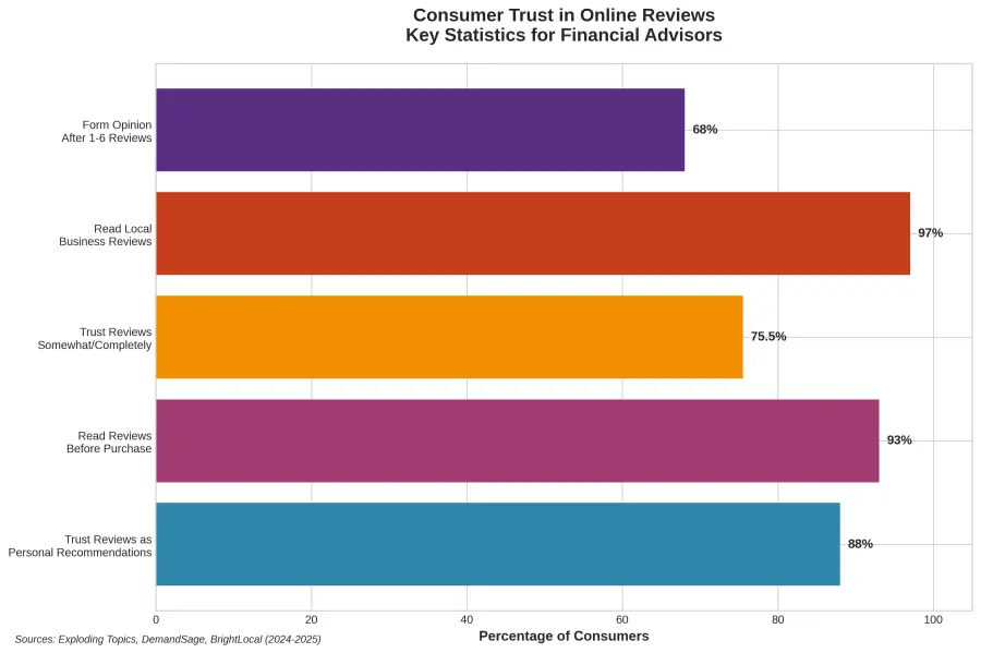 Online reviews are one of the biggest drivers of “social proof”. In fact, according to an INC.com survey, 84 percent of people trust online reviews as much as a recommendation from a friend. 68% of people form an opinion after reading between one to six online reviews.