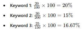 • Keyword A = 0.30, Keyword B = 0.15, Keyword C = 0.05.