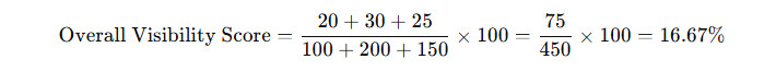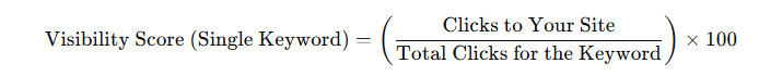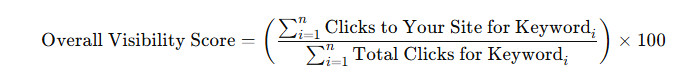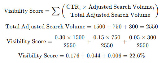 Visibility Score = ∑i=1n [(CTRi × Search Volumei) / Total Search Volume] × Weighting Factori